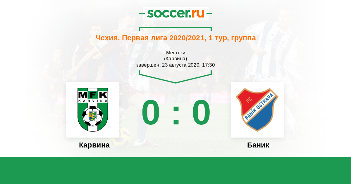 Чехия. Первая Лига 20.10.2018 Баник Логотип футбольный клуб Баник (Острава) 1:1 Логотип футбольный клуб Карвина Карвина