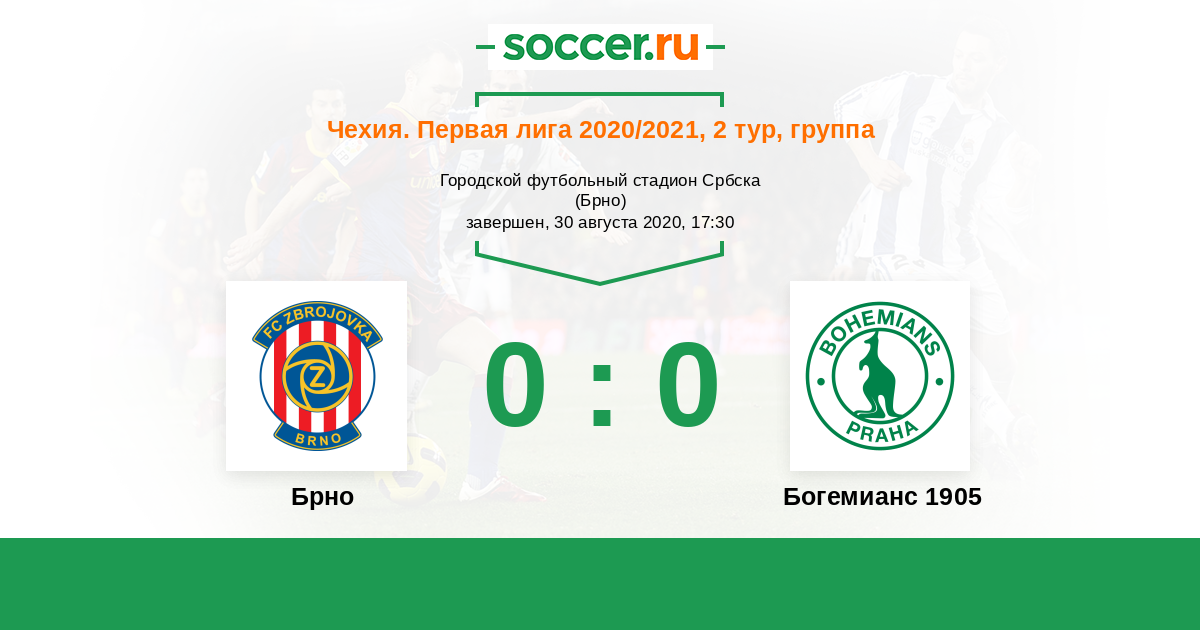 Чехия. Первая Лига 11.09.2016 Богемианс 1905 Логотип футбольный клуб Богемианс 1905 (Прага) 3:0 Логотип футбольный клуб Брно Брно