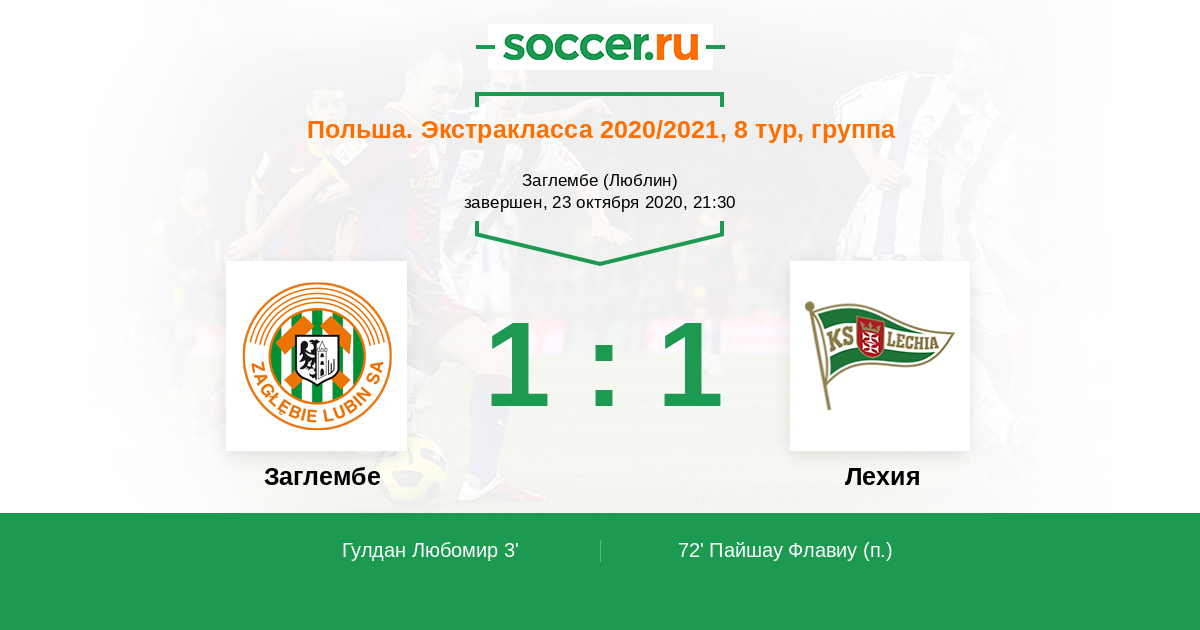 Польша. Экстракласса 06.11.2021 Лехия Логотип футбольный клуб Лехия (Гданьск) 2:1 Логотип футбольный клуб Заглембе (Любина) Заглембе