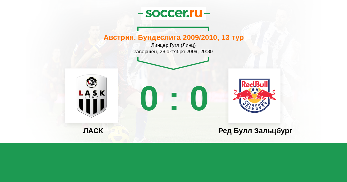 Австрия. Бундеслига 18.04.2010 ЛАСК Логотип футбольный клуб ЛАСК (Линц) 0:0 Логотип футбольный клуб Ред Булл Зальцбург Ред Булл Зальцбург