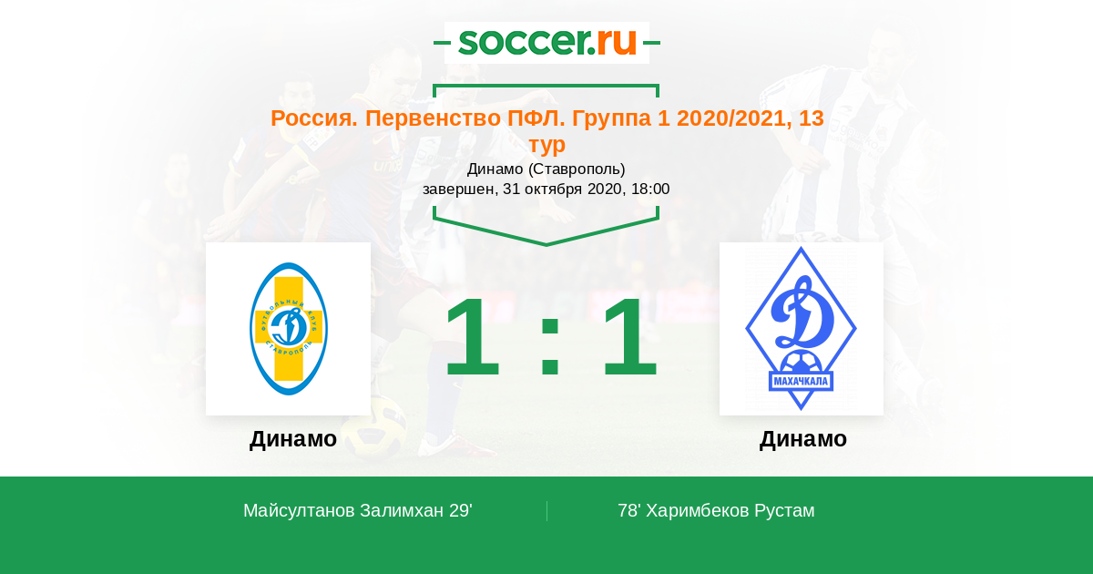 Россия. Вторая лига. Группа 1 12.09.2021 Динамо Ставрополь Логотип футбольный клуб Динамо Ставрополь 2:3 Логотип футбольный клуб Динамо (Махачкала) Динамо