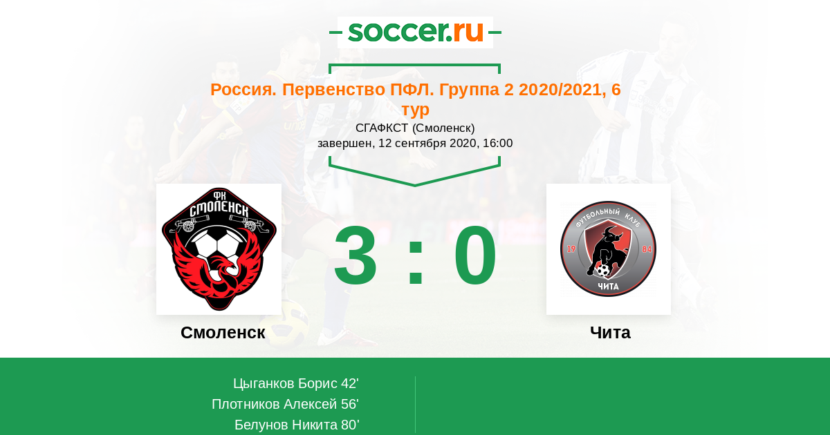 Россия. Вторая лига. Группа 2 08.05.2021 Чита Логотип футбольный клуб Чита 2:1 Логотип футбольный клуб Смоленск Смоленск