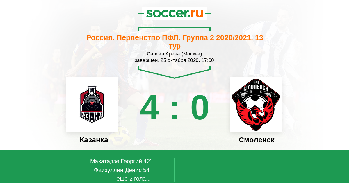 Россия. Вторая лига. Группа 2 04.06.2021 Смоленск Логотип футбольный клуб Смоленск 0:0 Логотип футбольный клуб Казанка (Москва) Казанка
