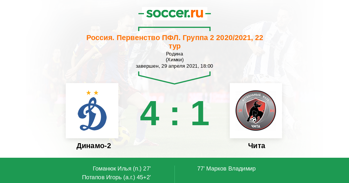 Россия. Вторая лига. Группа 2 16.04.2022 Химик   1:2   Чита