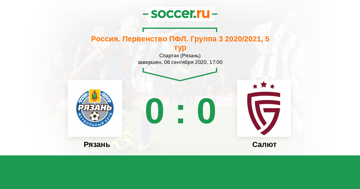 Россия. Вторая лига. Группа 3 06.09.2019 Салют Логотип футбольный клуб Салют (Белгород) 0:1 Логотип футбольный клуб Рязань Рязань