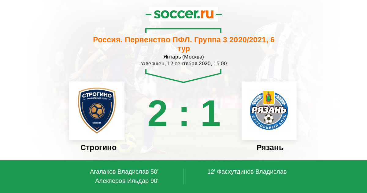 Россия. Вторая лига. Группа 3 16.07.2019 Строгино Логотип футбольный клуб Строгино (Москва) 2:1 Логотип футбольный клуб Рязань Рязань
