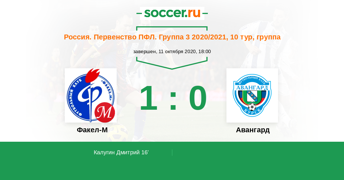 Россия. Вторая лига. Группа 3 25.10.2021 Авангард Логотип футбольный клуб Авангард (Курск) 1:1 Логотип футбольный клуб Факел-М (Воронеж) Факел-М