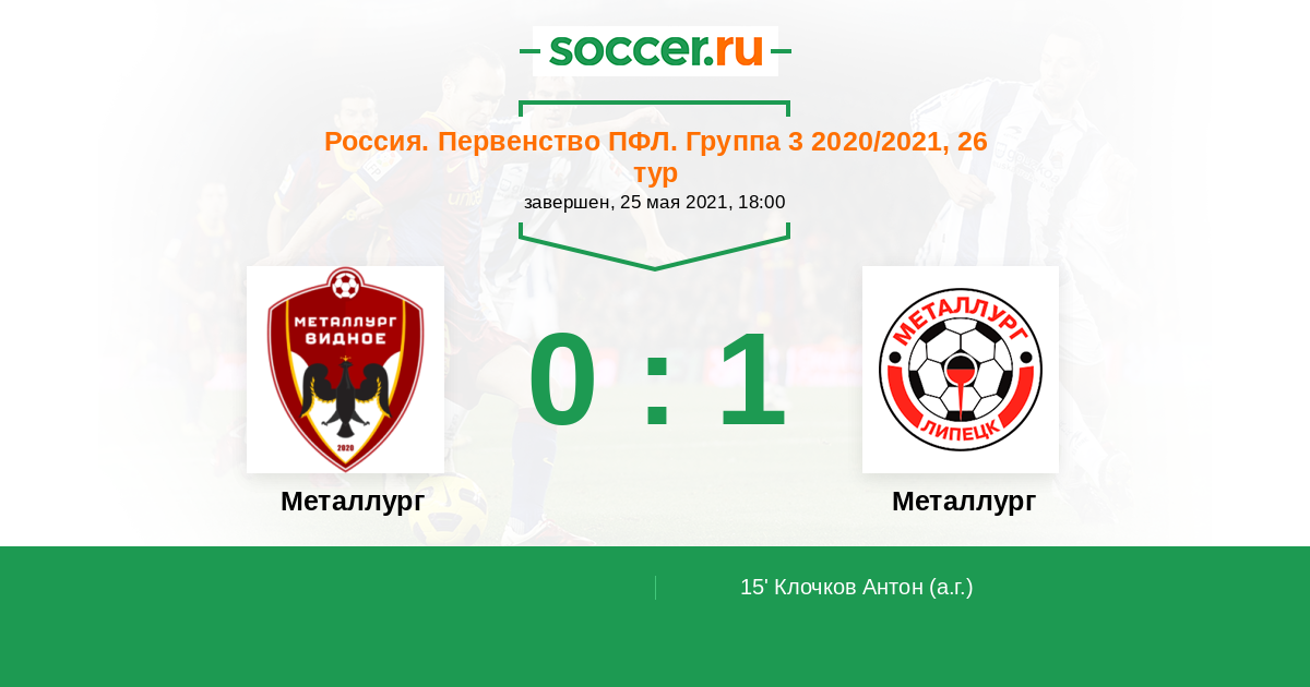 Россия. Вторая лига. Группа 3 24.10.2020 Металлург Логотип футбольный клуб Металлург (Липецк) 7:0 Логотип футбольный клуб Металлург (Видное) Металлург