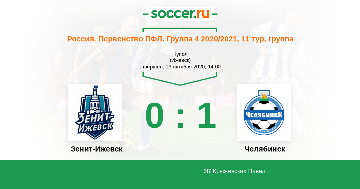Россия. Вторая лига. Группа 4 04.10.2014 Зенит-Ижевск Логотип футбольный клуб Зенит-Ижевск 0:0 Логотип футбольный клуб Челябинск Челябинск