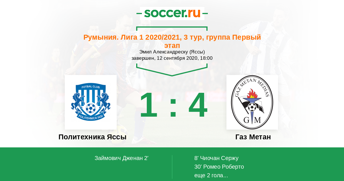 Румыния. Лига 1 30.09.2018 Газ Метан Логотип футбольный клуб Газ Метан (Медиаш) 1:0 Логотип футбольный клуб Политехника Яссы Политехника Яссы