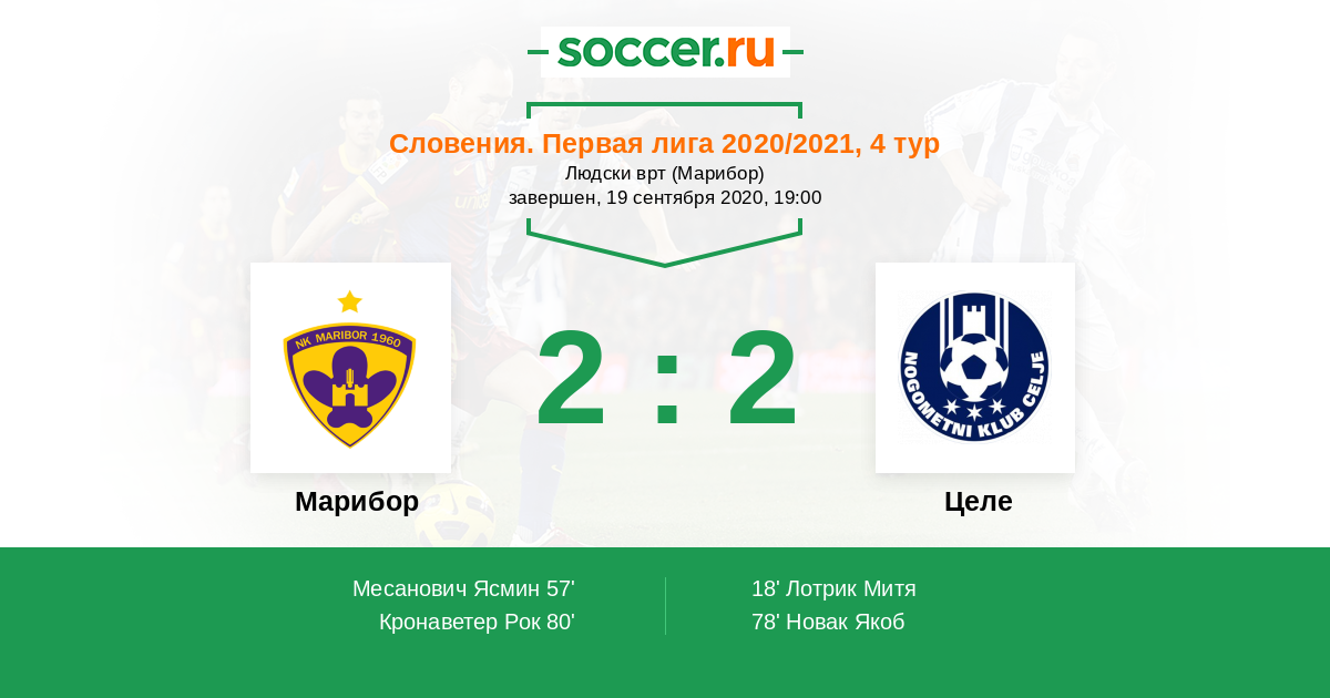 Словения. Первая Лига 18.10.2014 Марибор Логотип футбольный клуб Марибор 1:2 Логотип футбольный клуб Целе Целе