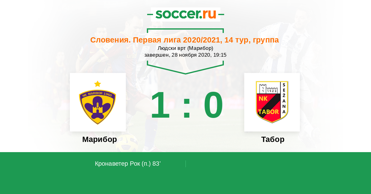 Словения. Первая Лига 26.09.2020 Табор Логотип футбольный клуб Табор (Сежана) 3:1 Логотип футбольный клуб Марибор Марибор