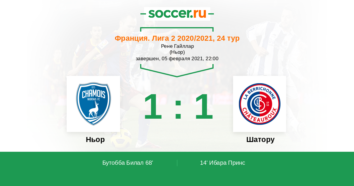 Франция. Лига 2 23.11.2012 Ньор Логотип футбольный клуб Ньор 2:2 Логотип футбольный клуб Шатору Шатору