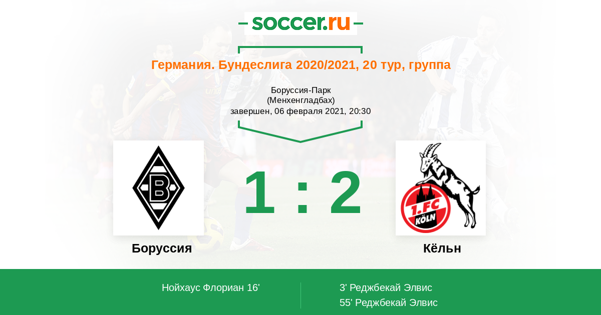 Германия. Бундеслига 20.02.2016 Боруссия Логотип футбольный клуб Боруссия (Менхенгладбах) 1:0 Логотип футбольный клуб Кёльн Кёльн