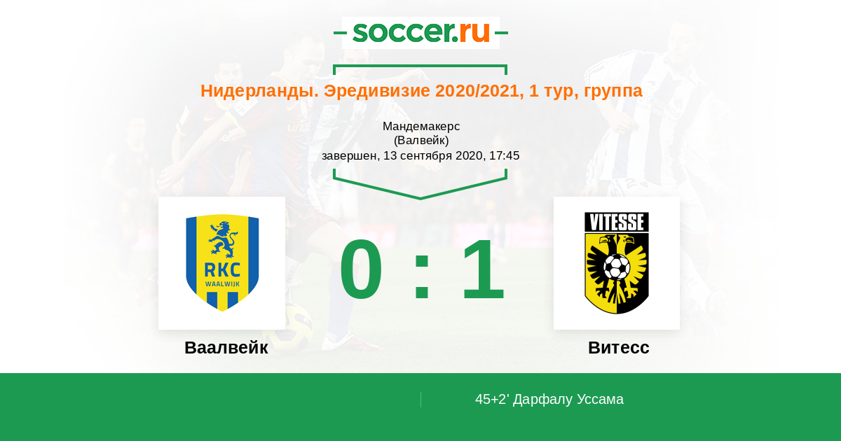 Нидерланды. Эредивизи 12.09.2021 Ваалвейк Логотип футбольный клуб Ваалвейк (Валвейк) 1:2 Логотип футбольный клуб Витесс (Арнем) Витесс