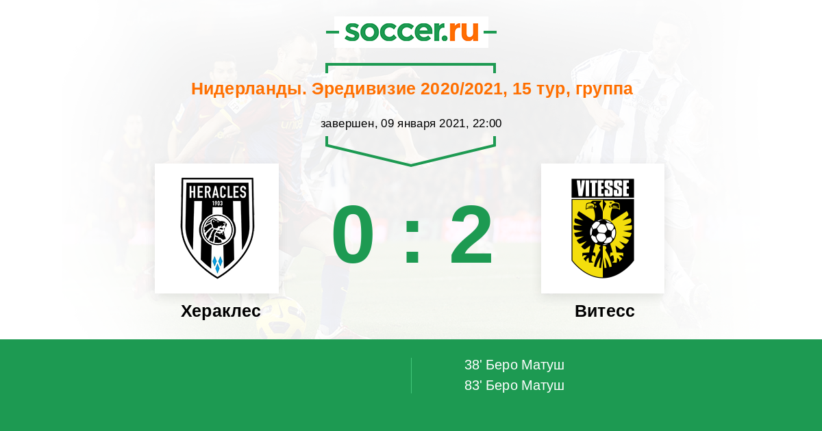 Нидерланды. Кубок 22.01.2020 Хераклес Логотип футбольный клуб Хераклес (Алмело) 0:2 Логотип футбольный клуб Витесс (Арнем) Витесс