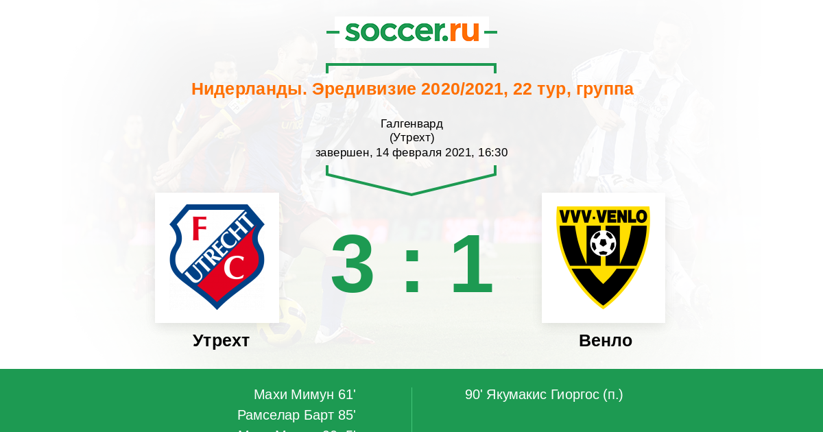 Нидерланды. Эредивизи 15.04.2012 Утрехт Логотип футбольный клуб Утрехт 4:2 Логотип футбольный клуб Венло Венло