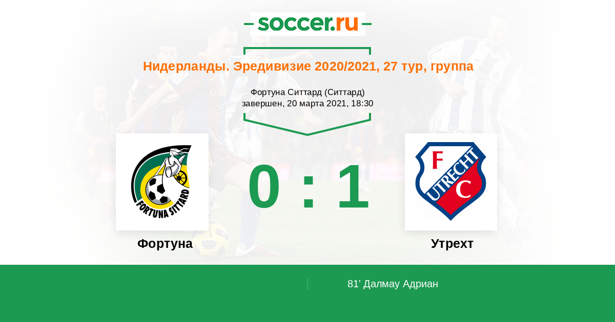 Нидерланды. Эредивизи 19.12.2020 Утрехт Логотип футбольный клуб Утрехт 1:1 Логотип футбольный клуб Фортуна (Ситтард) Фортуна