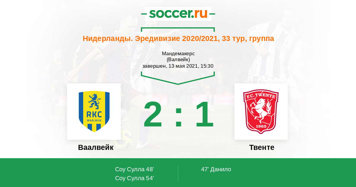 Нидерланды. Эредивизи 12.12.2021 Твенте Логотип футбольный клуб Твенте (Энсхеде) 2:1 Логотип футбольный клуб Ваалвейк (Валвейк) Ваалвейк
