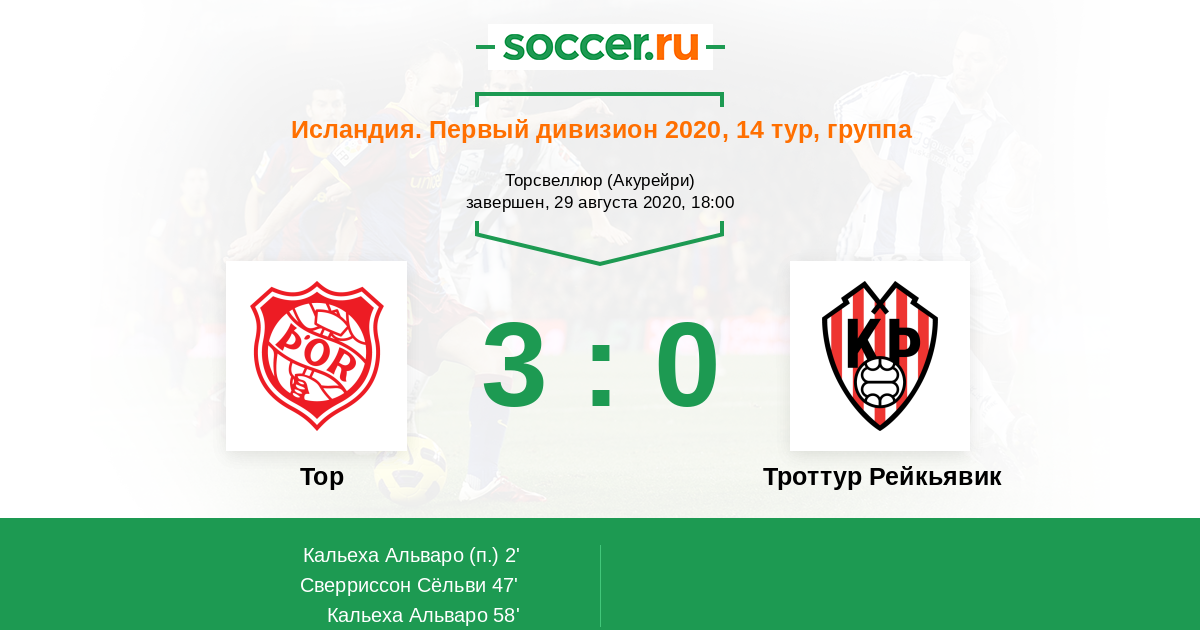 Исландия. Первый дивизион 04.07.2018 Тор Логотип футбольный клуб Тор (Акурейри) 3:1 Логотип футбольный клуб Троттур Рейкьявик Троттур Рейкьявик