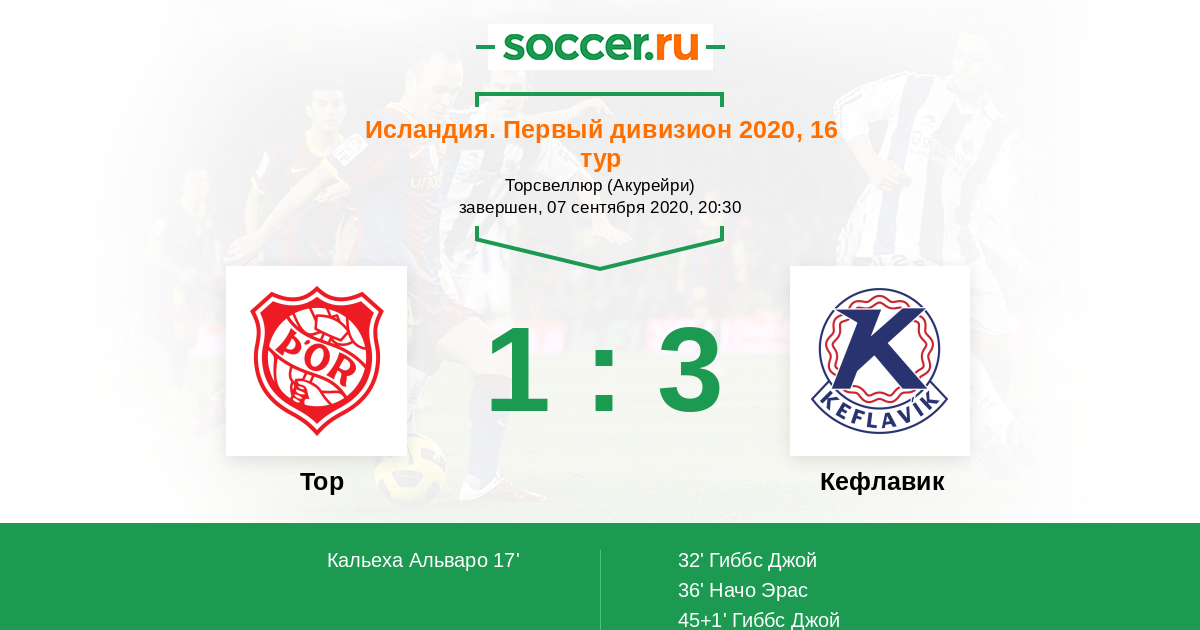 Исландия. Первый дивизион 12.07.2020 Кефлавик Логотип футбольный клуб Кефлавик (Рейкьянесбар) 2:1 Логотип футбольный клуб Тор (Акурейри) Тор