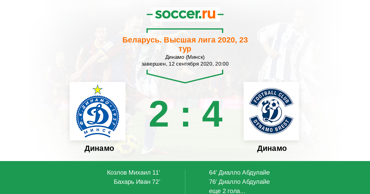 Беларусь. Высшая лига 10.05.2020 Динамо Логотип футбольный клуб Динамо (Брест) 2:1 Логотип футбольный клуб Динамо (Минск) Динамо