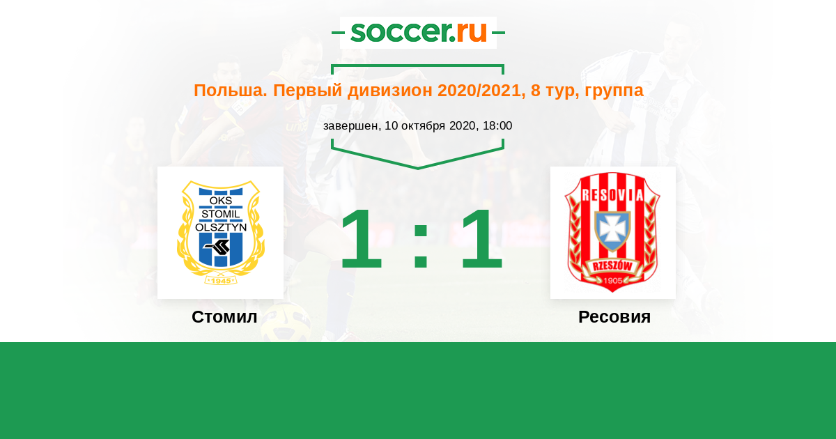 Польша. Первый дивизион 13.09.2021 Стомил Логотип футбольный клуб Стомил (Ольштин) 4:2 Логотип футбольный клуб Ресовия (Жешув) Ресовия