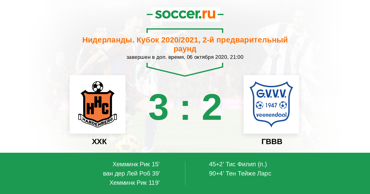 Нидерланды. Топклассе (3-й дивизион) 22.11.2014 ХХК Логотип футбольный клуб ХХК (Харденберг) 5:1 Логотип футбольный клуб ГВВВ (Венендал) ГВВВ