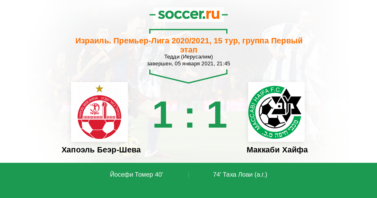 Израиль. Премьер-Лига 26.04.2021 Хапоэль Беэр-Шева Логотип футбольный клуб Хапоэль Беэр-Шева 1:1 Логотип футбольный клуб Маккаби Хайфа Маккаби Хайфа