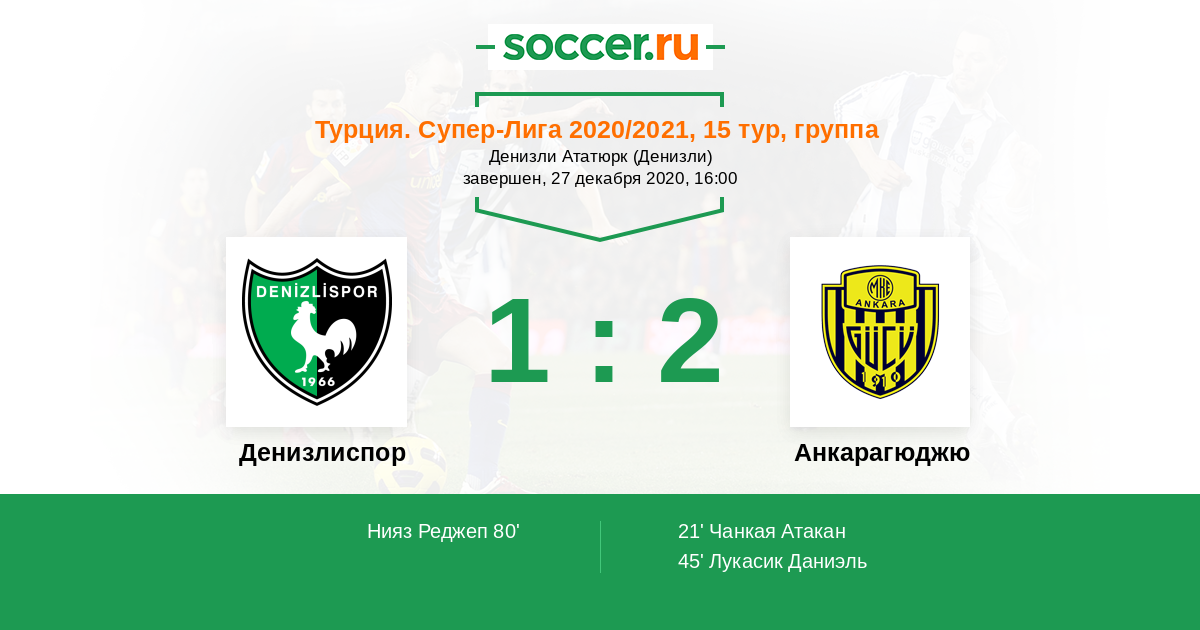 Турция. Первая лига 15.12.2012 Денизлиспор Логотип футбольный клуб Денизлиспор 2:1 Логотип футбольный клуб Анкарагюджю Анкарагюджю