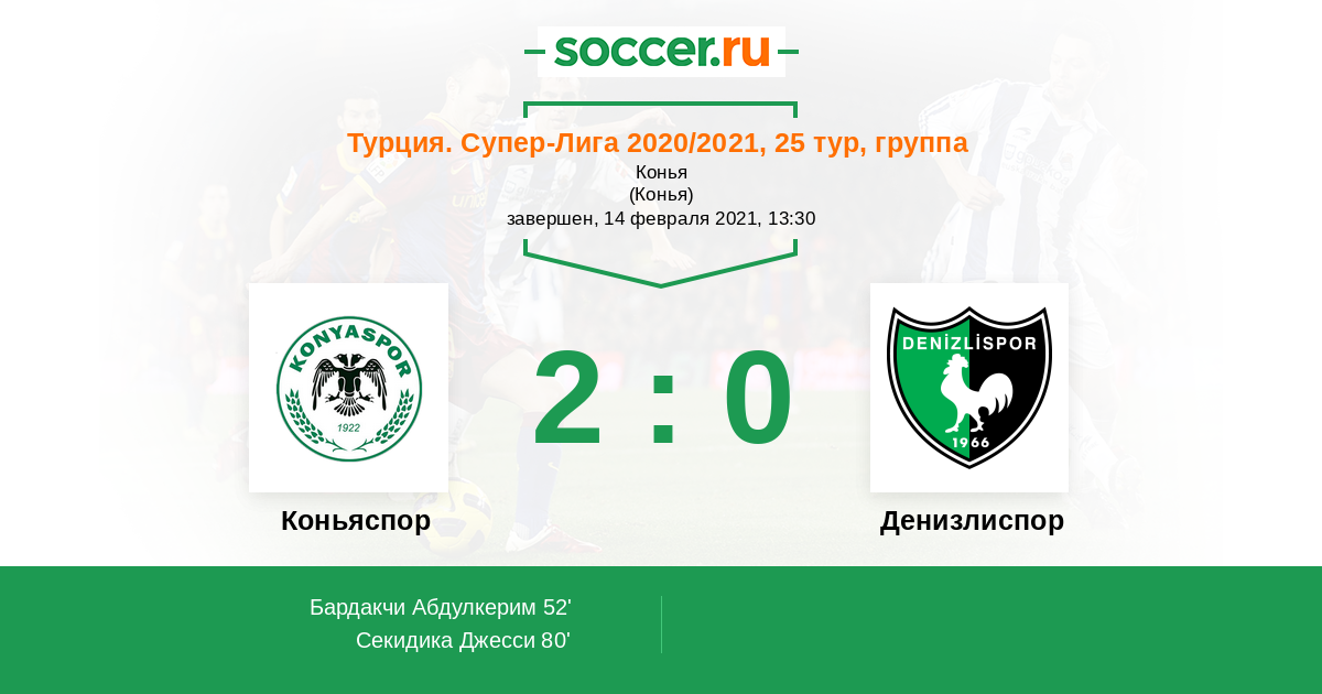 Турция. Суперлига 04.10.2020 Денизлиспор Логотип футбольный клуб Денизлиспор 0:0 Логотип футбольный клуб Коньяспор Коньяспор