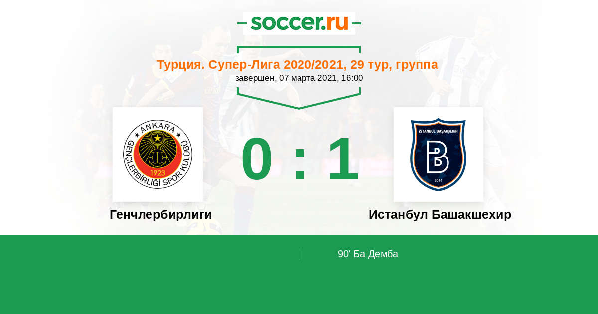 Турция. Суперлига 12.02.2011 Истанбул Башакшехир Логотип футбольный клуб Истанбул Башакшехир (Стамбул) 0:1 Логотип футбольный клуб Генчлербирлиги (Анкара) Генчлербирлиги