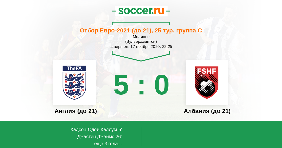 Англия (до 21) 9:0 3:0 6:0