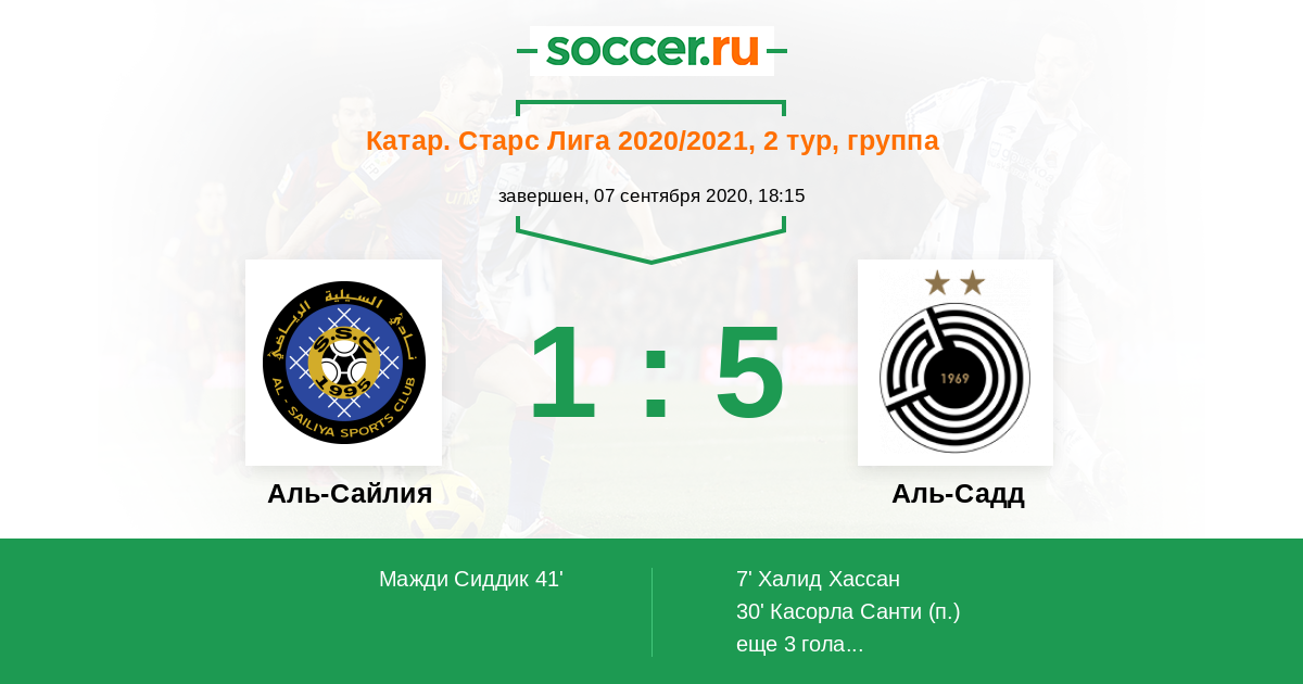 Катар. Старс Лига 22.09.2017 Аль-Сайлия Логотип футбольный клуб Аль-Сайлия (Доха) 2:3 Логотип футбольный клуб Аль-Садд (Доха) Аль-Садд