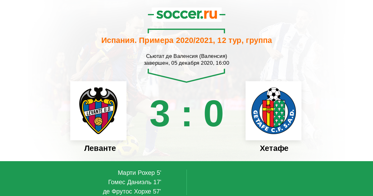 Испания. Примера 01.12.2019 Хетафе Логотип футбольный клуб Хетафе 4:0 Логотип футбольный клуб Леванте (Валенсия) Леванте