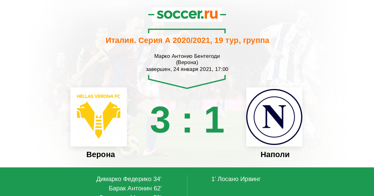 Италия. Серия А 12.01.2025 Наполи Логотип футбольный клуб Наполи (Неаполь) 2:0 Логотип футбольный клуб Верона Верона