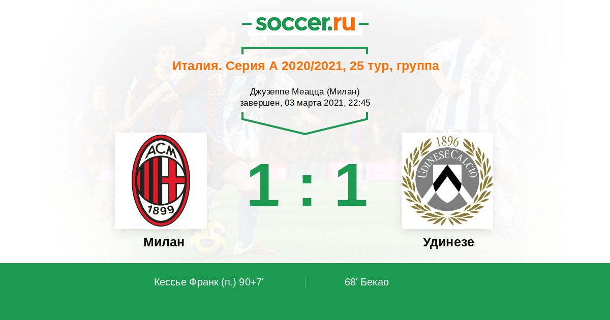 Италия. Серия А 25.02.2022 Милан Логотип футбольный клуб Милан 1:1 Логотип футбольный клуб Удинезе Удинезе