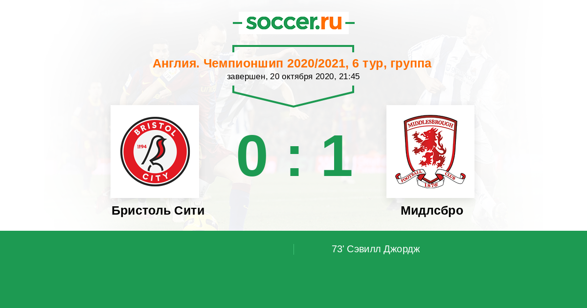 Англия. Чемпионшип 30.10.2010 Мидлсбро Логотип футбольный клуб Мидлсбро 1:2 Логотип футбольный клуб Бристоль Сити Бристоль Сити