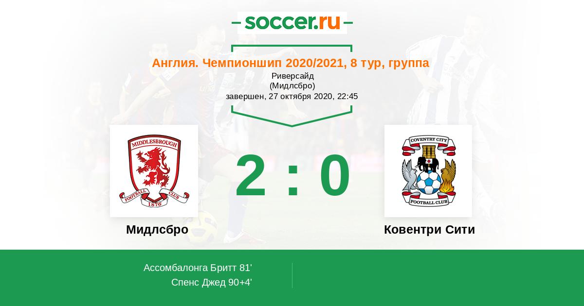 Англия. Чемпионшип 02.03.2021 Ковентри Сити Логотип футбольный клуб Ковентри Сити 1:2 Логотип футбольный клуб Мидлсбро Мидлсбро
