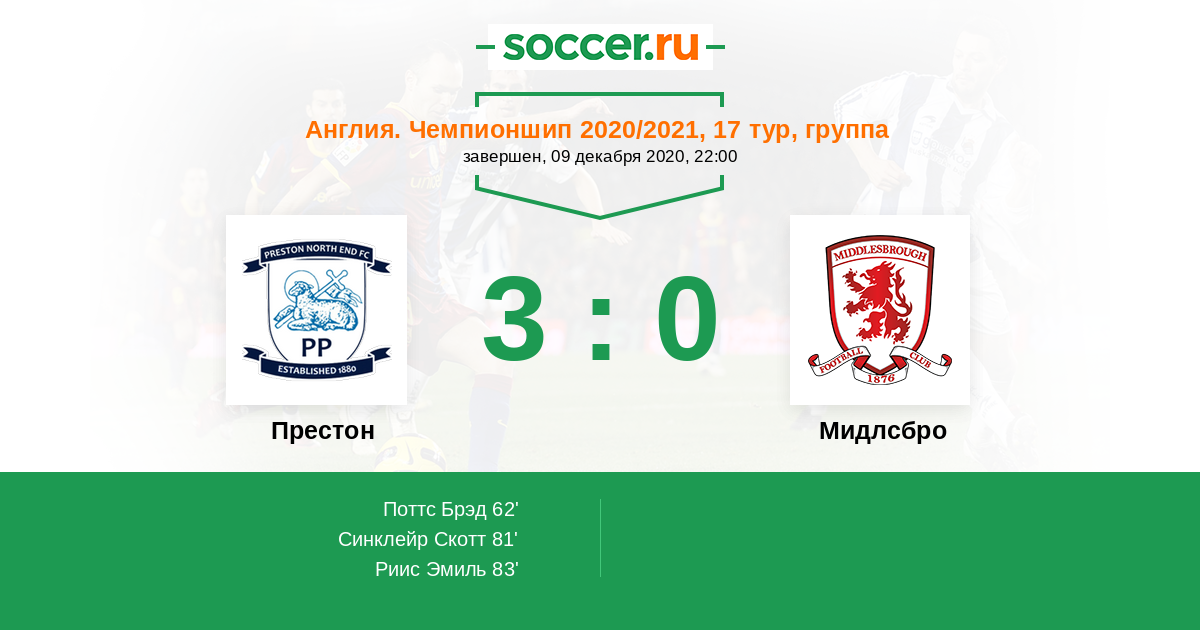 Англия. Чемпионшип 01.01.2020 Престон Логотип футбольный клуб Престон 0:2 Логотип футбольный клуб Мидлсбро Мидлсбро