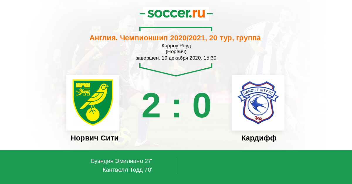 Англия. Чемпионшип 16.01.2021 Кардифф Логотип футбольный клуб Кардифф 1:2 Логотип футбольный клуб Норвич Сити Норвич Сити