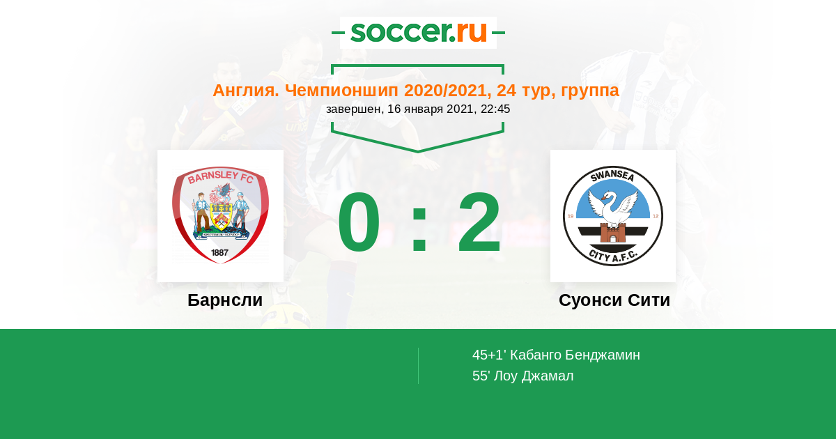 Англия. Чемпионшип 19.12.2020 Суонси Сити Логотип футбольный клуб Суонси Сити 2:0 Логотип футбольный клуб Барнсли Барнсли