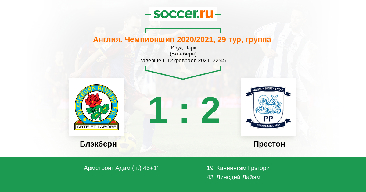 Поражение от «обручей» прервало четырехматчевую серию «Блэкберна» без поражений. За этот успешный период команда обыграла «Бирмингем» (2:0), «Мидлсбро» (1:0) и «Лутон» (1:0), а также завершила вничью матч со «Сток Сити» (1:1), как раз на родной арене. В целом же за девять последних поединков дома «Блэкберн» потерпел всего одно поражение.Обе команды не показывают в последних матчах стабильных результатов. «Блэкберн» выглядит чуть лучше, а поражение от КПР должно добавить мотивации, все же шансы попасть в шестерку еще есть неплохие. «Престон» довольно часто проигрывал в предыдущих турах, в том числе на выезде.