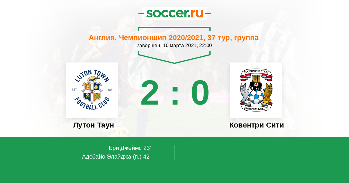 Англия. Чемпионшип 29.09.2021 Лутон Таун Логотип футбольный клуб Лутон Таун 5:0 Логотип футбольный клуб Ковентри Сити Ковентри Сити