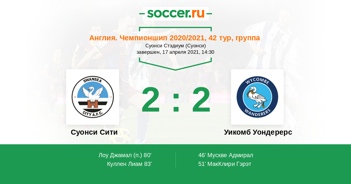 Англия. Чемпионшип 26.09.2020 Уикомб Уондерерс Логотип футбольный клуб Уикомб Уондерерс (Хай-Вайкомб) 0:2 Логотип футбольный клуб Суонси Сити Суонси Сити