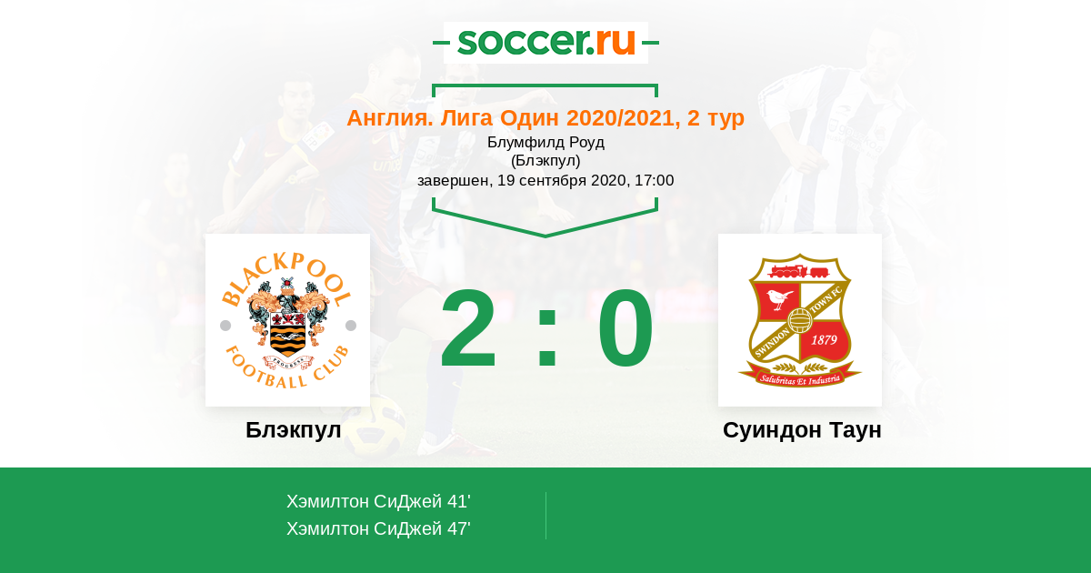 Англия. Первая Футбольная Лига 02.04.2021 Суиндон Таун Логотип футбольный клуб Суиндон Таун 0:2 Логотип футбольный клуб Блэкпул Блэкпул