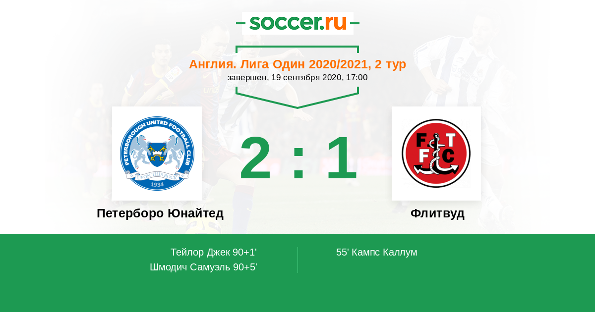 Англия. Первая Футбольная Лига 02.04.2021 Флитвуд Логотип футбольный клуб Флитвуд 0:1 Логотип футбольный клуб Петерборо Юнайтед Петерборо Юнайтед