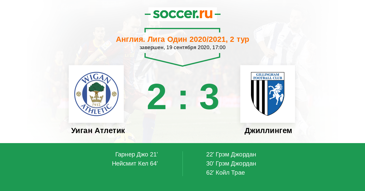 Англия. Первая Футбольная Лига 02.10.2021 Джиллингем Логотип футбольный клуб Джиллингем 0:2 Логотип футбольный клуб Уиган Атлетик Уиган Атлетик