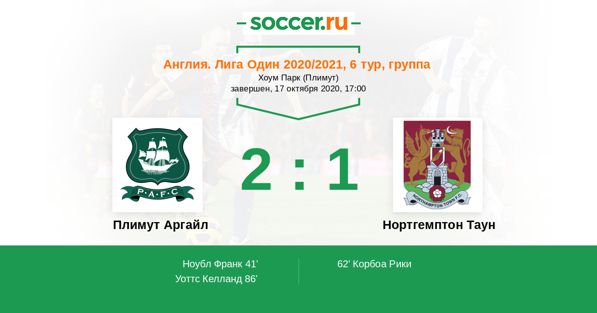 Англия. Первая Футбольная Лига 02.03.2021 Нортгемптон Таун Логотип футбольный клуб Нортгемптон Таун 2:0 Логотип футбольный клуб Плимут Аргайл Плимут Аргайл