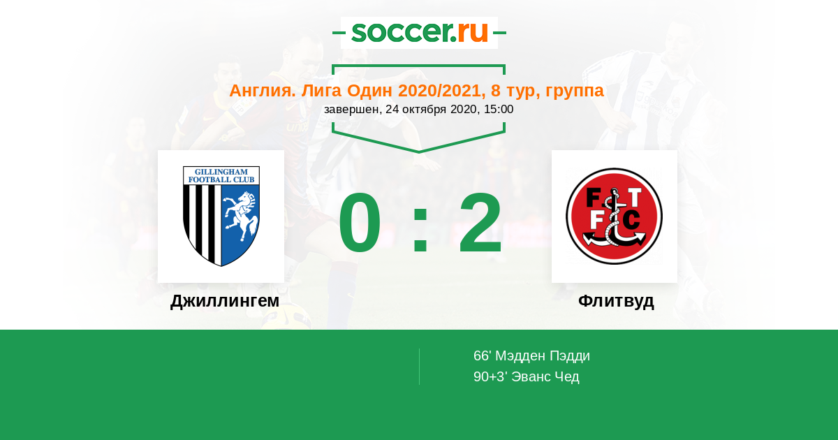 Англия. Первая Футбольная Лига 09.03.2021 Флитвуд Логотип футбольный клуб Флитвуд 1:0 Логотип футбольный клуб Джиллингем Джиллингем